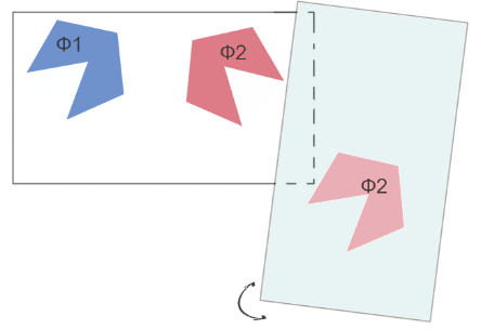 Для того чтобы узнать равны ли фигуры друг другу, переведем на кальку (прозрачную бумагу) одну из фигур (в данном случае Ф2). А затем, вращая кальку, пробуем совместить копию фигуры Ф2 и фигуру Ф1.