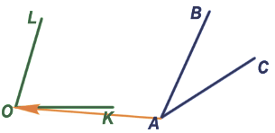 BAC так, чтобы сторона AC совпала со стороной OK, при этом стороны OL и AB должны быть по одну сторону от совпавших сторон.