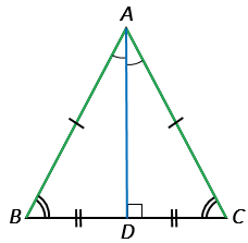 | В равнобедренном треугольнике высота, проведённая к основанию, является медианой и биссектрисой. |