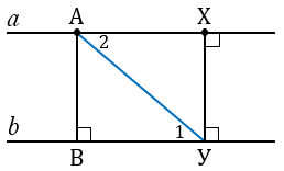 равно АВ. Проведем из точки Х перпендикуляр ХУ к прямой
