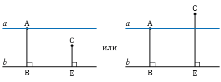Из доказанной выше теоремы следует, что расстояние между параллельными прямыми - это наименьшее расстояние (перпендикуляр) от каждой точки одной из этих прямых до другой прямой.