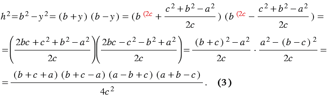 Площадь треугольника со сторонами , , выражается формулой , где - полупериметр треугольника. |