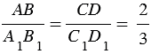 Отрезки АВ = 2 см и СD = 1 см, пропорциональны отрезкам А1В1 = 3 см и С1D1 = 1,5 см. Составим отношение отрезков АВ и А1В, СD и С1D1, получим: