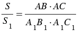 (т.к. площади треугольников, имеющих по равному углу, относятся как произведения сторон, заключающих равные углы). При этом, из подобия треугольников АВС и А1В1С1 следует то, что