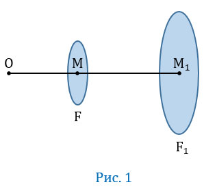 Построим фигуру F1, подобную фигуре F. Каждой точке М фигуры F сопоставляется точка М1 плоскости так, что точки М и М1 лежат на луче с началом в некоторой фиксированной точке О, причем ОМ =