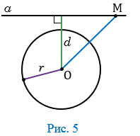 В этом случае прямая называется касательной по отношению к окружности (на рисунке 4 прямая