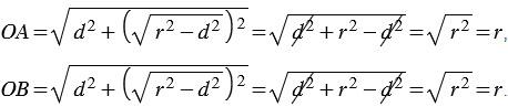 Проверим, лежат ли точки А и В на окружности.