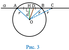 В этом случае прямая называется секущей по отношению к окружности (на рисунке 2 прямая