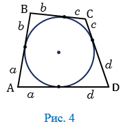 Рассмотрим четырехугольник АВСD, описанный около окружности (Рис. 4).