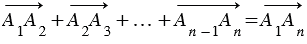 Это правило справедливо для любых точек А1, А2, ..., Аn, в частности в том случае когда некоторые из них совпадают. Если совпадают начало первого вектора и конец последнего, то сумма данных векторов равна нулевому вектору. На рисунке ниже совпадают начало первого вектора