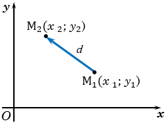 | Расстояние между двумя данными точками равно корню квадратному из суммы квадратов разностей соответствующих координат данных точек. |