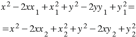 в заданной системе координат. Возведем выражения в скобках в квадрат: