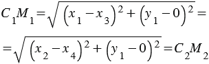 , значит, по определению рассматриваемый четырехугольник параллелограмм. По свойству параллелограмма имеем: М1М2 = С1С2, С1М1 = С2М2.