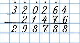 Пишу (единицы под единицами, десятки под десятками, сотни под сотнями, единицы тысяч под единицами тысяч, десятки тысяч под десятками тысяч): 320264 - 21476.