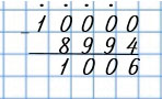 Пишу (единицы под единицами, десятки под десятками, сотни под сотнями, единицы тысяч под единицами тысяч): 10000 - 8994.