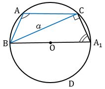Проведем диаметр ВА1 и рассмотрим треугольник А1ВС.