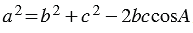 | Квадрат стороны треугольника равен сумме квадратов двух других сторон минус удвоенное произведение этих сторон, умноженное на косинус угла между ними. |