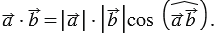 | Скалярным произведением двух векторов называется произведение их длин на косинус угла между ними. |