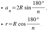= 3, 4 и 6, получим выражения для сторон правильного треугольника, квадрата и правильного шестиугольника:
