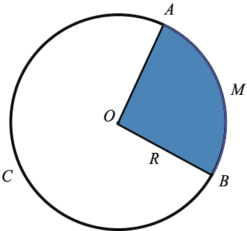 Мы видим, что данные радиусы делят круг на две части. Каждую из этих частей вместе с радиусами называют круговым сектором или сектором. Итак, круговой сектор (сектор) - это часть круга, ограниченная дугой и двумя радиусами, которые соединяют концы дуги с центром круга. Дуга сектора - это дуга, ограничивающая сектор. На нашем рисунке два сектора с дугами АМВ (закрашен синим) и АСВ.