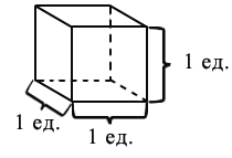 Каждое из рассматриваемых нами тел имеет объём, который можно измерить с помощью выбранной единицы измерения объёмов. За единицу измерения объемов примем куб, ребро которого равно единицы измерения отрезков. При этом объём этого куба равен единице, т.е. V = 1 ед3.