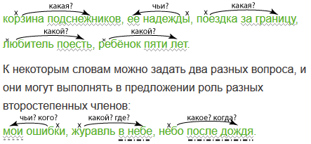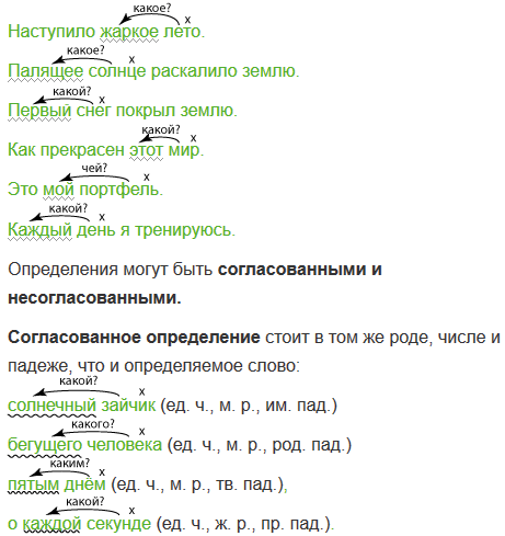 В роли определений чаще всего выступают имена прилагательные, причастия, порядковые числительные, указательные, притяжательные и определительные местоимения: