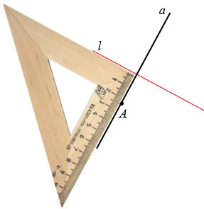 . Для этого используем чертежный угольник. Прикладываем чертежный угольник так, как показано на рисунке ниже и проводим прямую