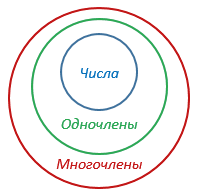 Связь между многочленами, одночленами и числами можно показать с помощью следующей схемы: