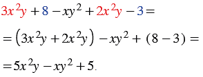 | Подобные слагаемые в многочлене называют подобными членами многочлена, а приведение подобных слагаемых в многочлене - приведением подобных членов многочлена. |
