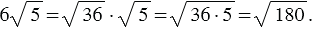 Данное преобразование называют внесением множителя под знак корня. Мы внесли под знак корня множитель 6.