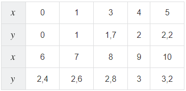 Построим на координатной плоскости точки, координаты которых указаны в таблице, затем проведем от начала координат через эти точки плавную линию, получим график функции